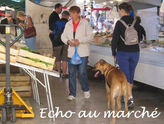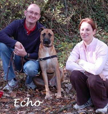 La première fois que j'ai vu Echo, croisé Dogue x Malinois (?) chez lui, il m'a accueilli avec une crête de 3 cms sur le dos, prêt à en découdre mais pas très sûr de lui quand même. Sorti de la SPA à l'age de 9 mois, Echo a manqué de socialisation à tel point que, à deux ans, tout ce qui est nouveau ou presque lui faisait peur. Quand j'ai dit à la fin du second cours que nous allions faire le marché de Castres samedi prochain, je ne pensais pas générer une semaine d'insomnie pour sa maitresse et pourtant Echo l'a fait et encore mieux la semaine suivante et il a fait encore de nombreuses autres marchés les semaines qui ont suivi. Couplé avec les balades éducatives, Echo a progressé à son rythme et c'est uniquement lui qui nous a dit quand il etait prêt à aller plus loin. Encore une fois, rien n'aurait été possible sans ce lien de confiance qui unit Echo à ses maitres et tous les trois sont à féliciter pour cette réussite qui me rend très fier.