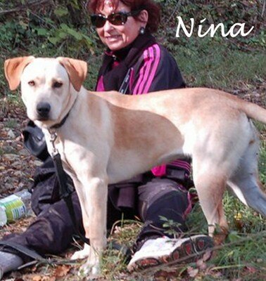 Savez vous que je fais 1m 88 ? le premier contact avec Nina a été si sympa qu'elle m'a laissé deux belles empreintes de pattes ... juste en dessous des épaules !!! Nina c'est l'énergie et l'enthousiasme à l'état pur. c'est très agréable ce genre de chien mais au quotidien, il faut pouvoir la gérer. Là encore, patience et régularité et Nina a appris que faire autrement est souvent "plus sympa" que de faire n'importe quoi. :-)