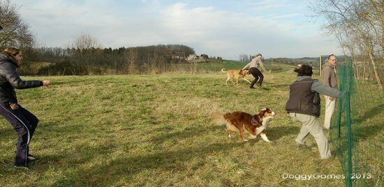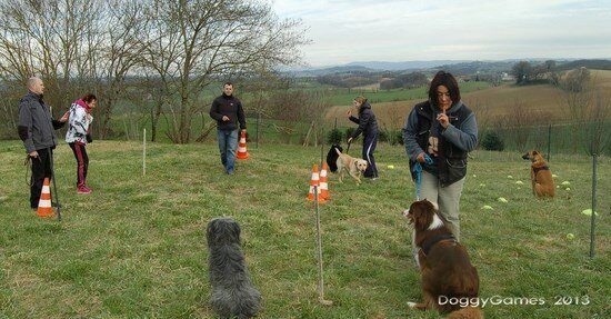 Une matinée ou une après-midii pour s'amuser entre gens sympas et chiens motivés ( et/ou l'inverse). Enthousiasme et bonne humeur obligatoires !!! ...Amenez les récompenses préférées de votre loulou et sa gamelle. (L'eau est fournie ). Le but est de changer de jeux à chaque DoggyGames. On voit, on essaye, et on change au fil du temps. Le tout est qu'il y ait bonne humeur et complicité. Vous pouvez voir les différents albums-photos faits lors des DoggyGames sur Facebook.
